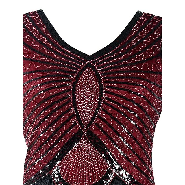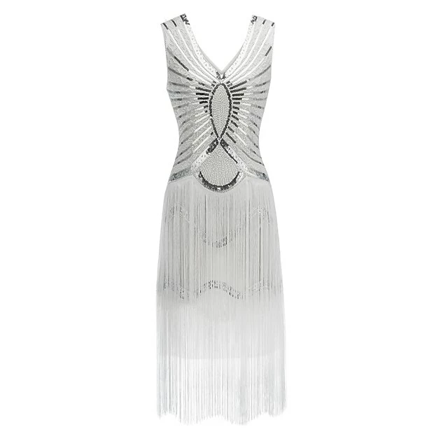 Women’s Retro 1920s Fringe Dress Midi Dress Party Halloween Sequins Tassel Fringe Geometric V Neck Sleeveless Regular Fit Spring Fall 2023 Black White S M L XL