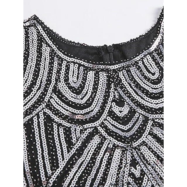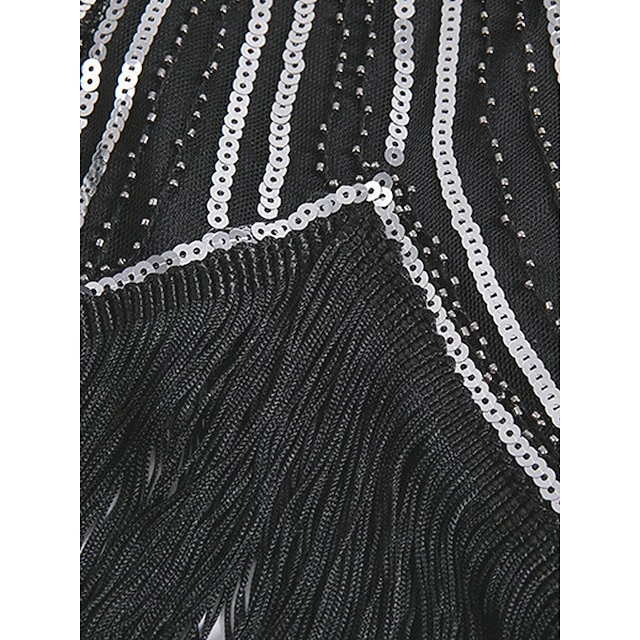 Women’s Retro 1920s Fringe Dress Midi Dress Party Holiday Sequins Tassel Fringe Geometric Crewneck Short Sleeve Regular Fit Spring Fall 2023 Silver Black XS S M L