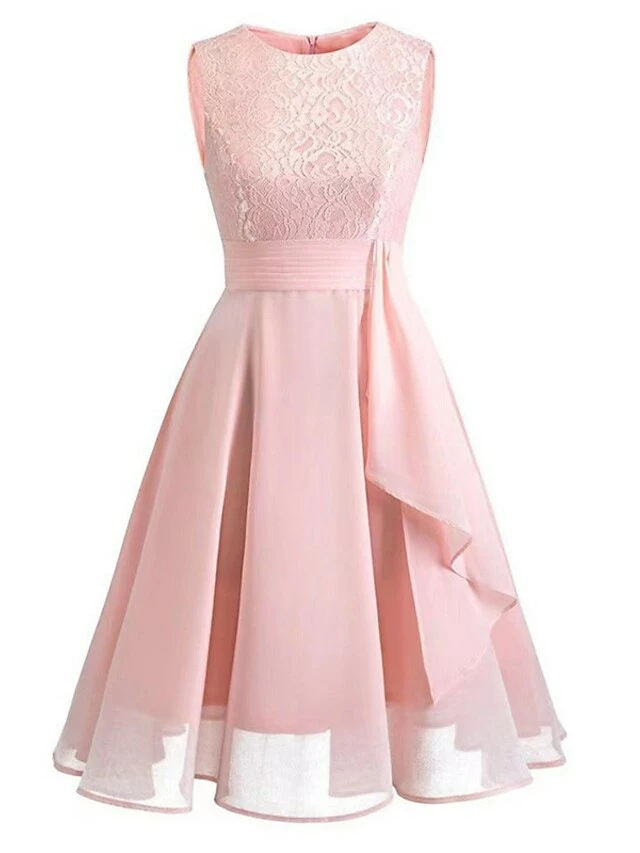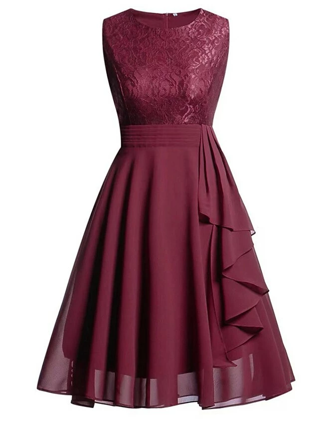 Women‘s Semi Formal Party Dress Wedding Guest Dress Lace Dress Swing Dress Midi Dress Pink Wine Navy Blue Sleeveless Pure Color Lace Winter Fall Spring Crew Neck Elegant Dress Date 2023 S M L XL XXL