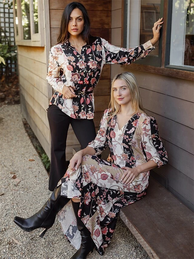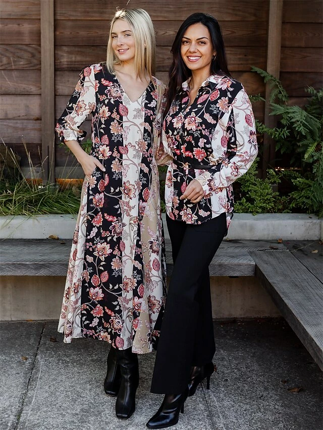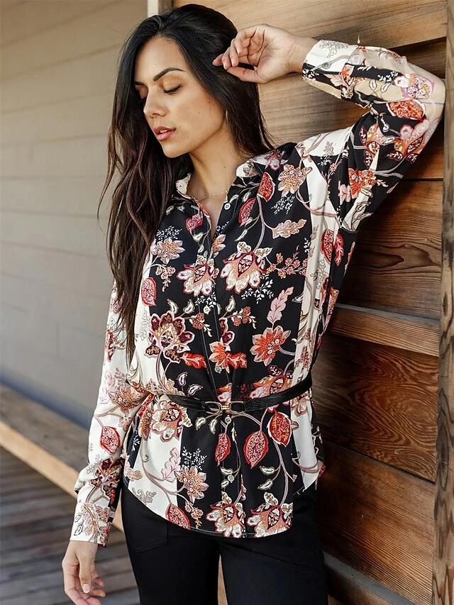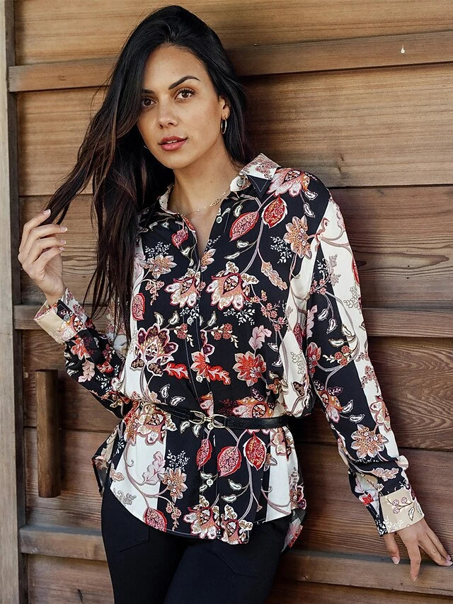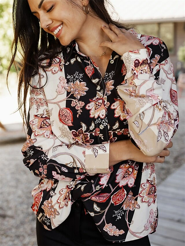 Women’s Shirt Blouse Black Flower Button Print Long Sleeve Casual Holiday Going Out Fashion Streetwear Casual Shirt Collar Regular Fit Fall Winter