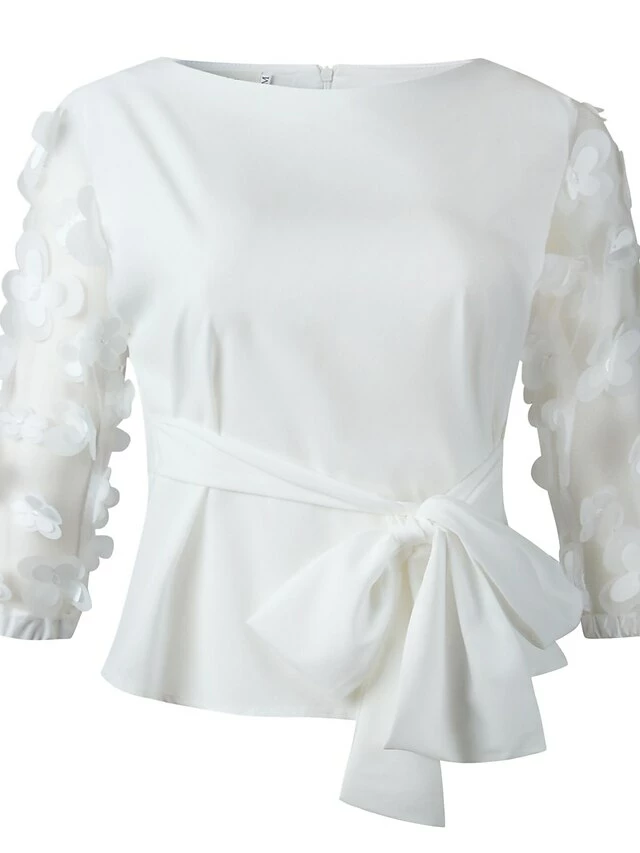Women’s Shirt Blouse Solid Color Lace Bow 3/4 Length Sleeve Work Daily Vintage Fashion Elegant Crew Neck Regular Fit Spring Fall