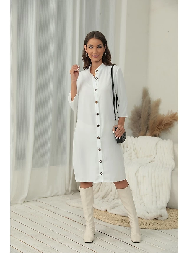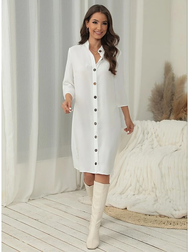 Women’s Shirt Dress Casual Dress Cotton Linen Dress Midi Dress Cotton Blend Fashion Basic Outdoor Daily Shirt Collar Button Half Sleeve Summer Spring Fall 2023 Regular Fit Black White Green Plain S M
