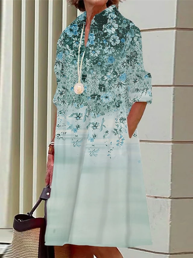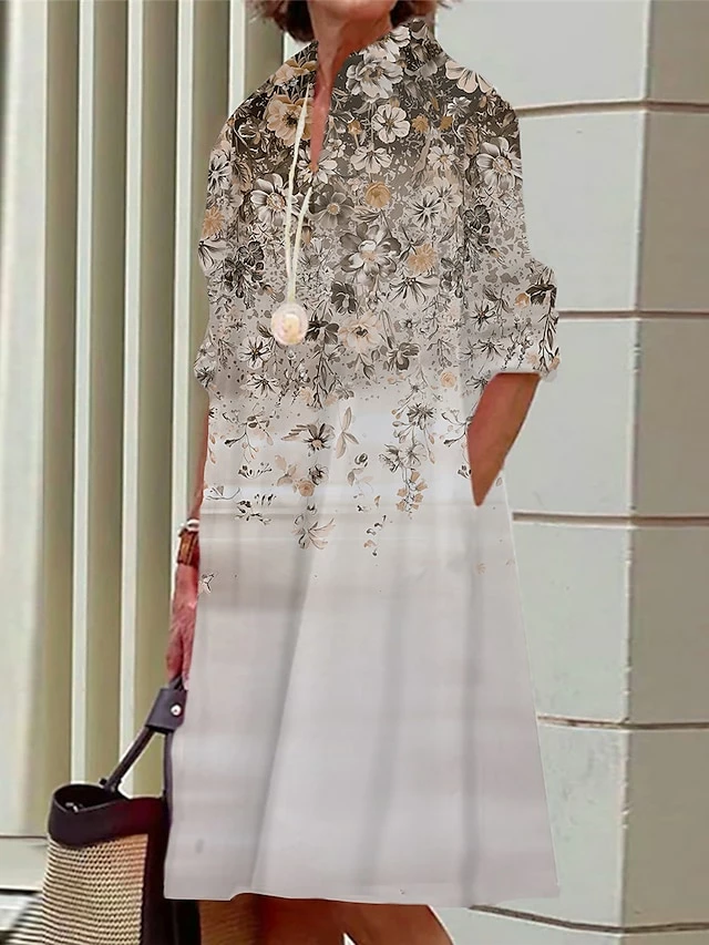 Women’s Shirt Dress Casual Dress Midi Dress Outdoor Office Daily Polyester Fashion Modern Shirt Collar Button Pocket Long Sleeve Fall Winter 2023 Loose Fit Black Blue Brown Floral S M L XL 2XL