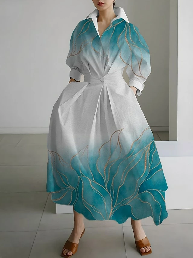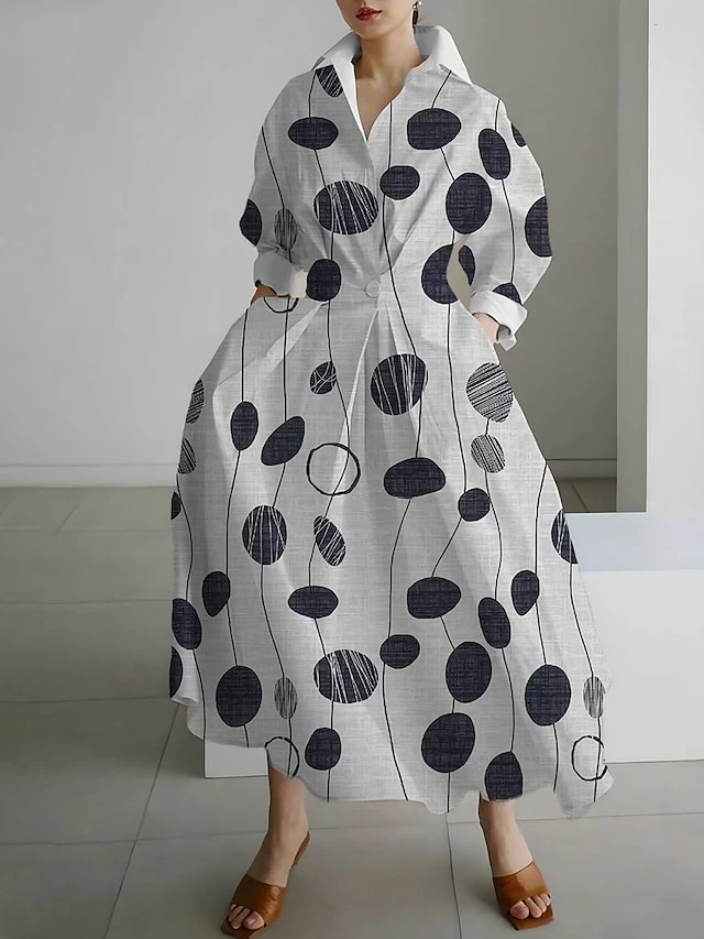 Women’s Shirt Dress Casual Dress Swing Dress Maxi Long Dress Outdoor Office Daily Polyester Fashion Modern Shirt Collar Button Pocket Long Sleeve Fall Winter 2023 Loose Fit Silver Black Royal Blue