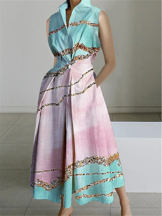 Women’s Shirt Dress Casual Dress Swing Dress Maxi Long Dress Outdoor Office Daily Polyester Fashion Modern Shirt Collar Button Pocket Sleeveless Summer Spring 2023 Loose Fit Pink Dark Pink Blue Color