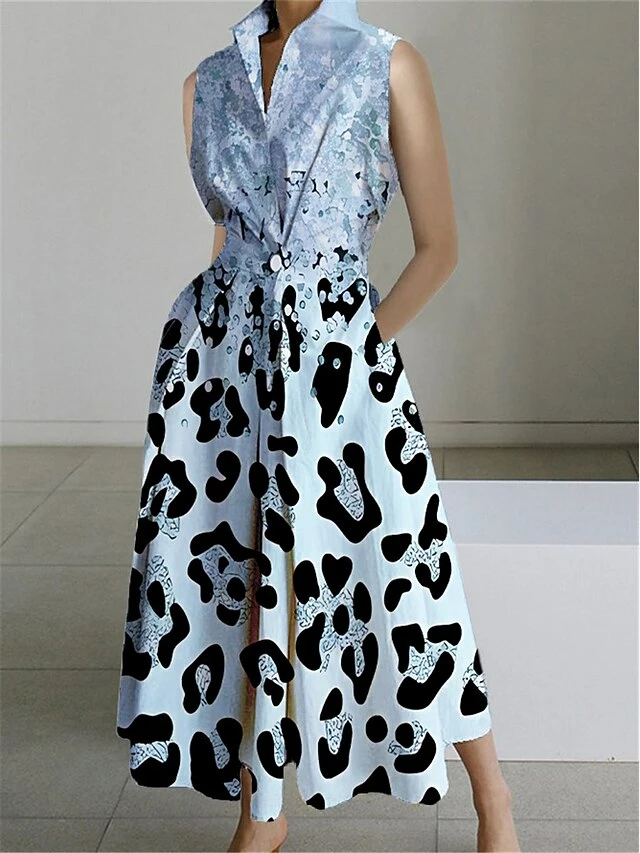 Women’s Shirt Dress Casual Dress Swing Dress Maxi Long Dress Outdoor Office Daily Polyester Fashion Modern Shirt Collar Button Pocket Sleeveless Summer Spring 2023 Loose Fit Pink Navy Blue Blue