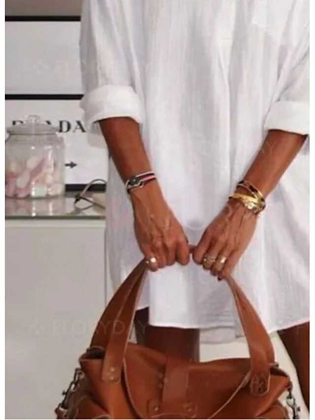Women’s Shirt Dress Mini Dress Daily Vacation Polyester Casual Shirt Collar Ruched Long Sleeve Summer Spring Fall 2023 Loose Fit White Pure Color 3XL