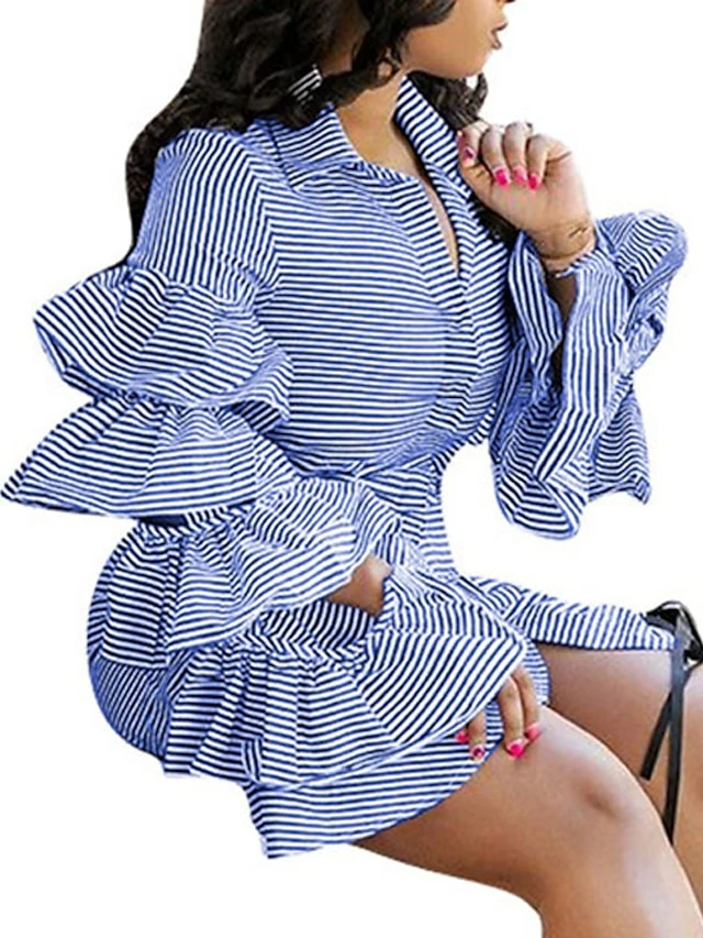 Women’s Shirt Dress Sheath Dress Midi Dress Winter Dress Daily Vacation Polyester Cotton Blend Fashion Casual Shirt Collar Lace Up Ruched Long Sleeve Summer Spring Fall 2022 Regular Fit Red Light Blue
