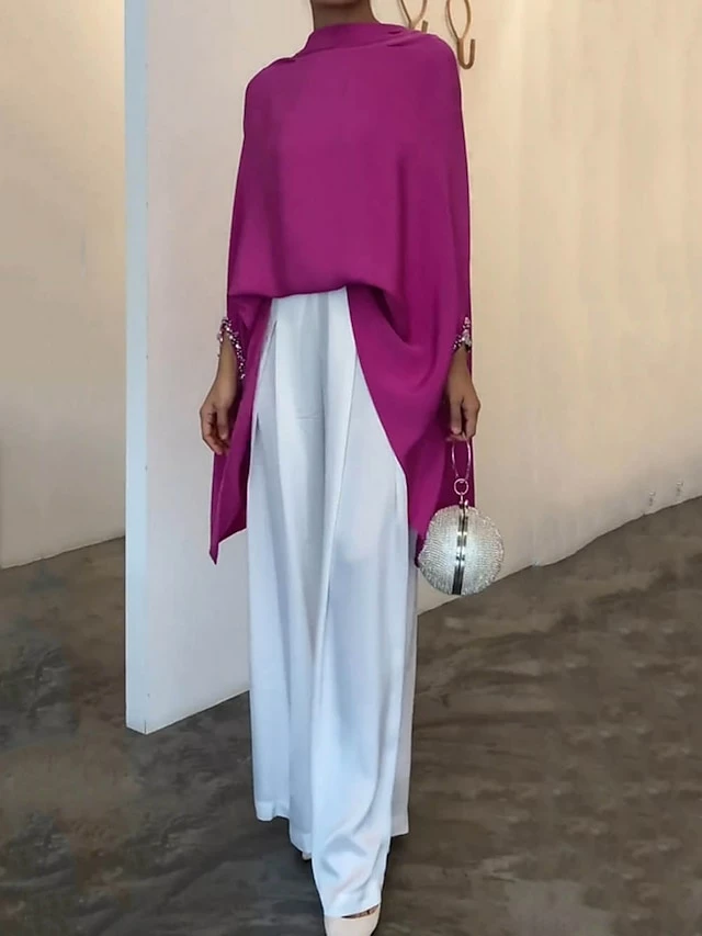 Women’s Shirt Pants Sets Fuchsia Solid Color Long Sleeve Casual Daily Fashion Neon & Bright Round Neck Regular Fit Spring &Fall
