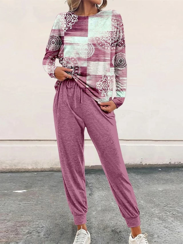 Women’s Sweatshirt Tracksuit Pants Sets Pink Blue Purple Graphic Drawstring Print Long Sleeve Outdoor Casual Active Daily Round Neck Regular Fit Spring &Fall