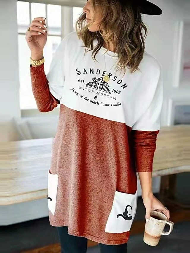 Women‘s T Shirt Dress Tee DressShort Mini Dress Photo Color Long Sleeve Color Block Letter Elk Pocket Print Spring Winter Crew Neck Casual Modern Loose Fit 2022 S M L XL XXL 3XL