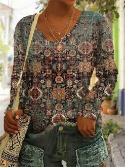 Women’s T Shirt Tee Rainbow Graphic Print Long Sleeve Daily Weekend Basic V Neck Regular Fit Painting Fall & Winter