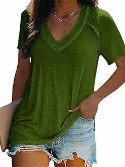 Women’s T Shirt Tee Tunic Shirts White Pink Blue Plain Solid Colored Short Sleeve Casual Daily Basic Elegant V Neck Long S