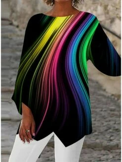 Women’s Shirt Blouse Black Blue Green Striped Print Short Sleeve Casual Basic V Neck Regular Fit
