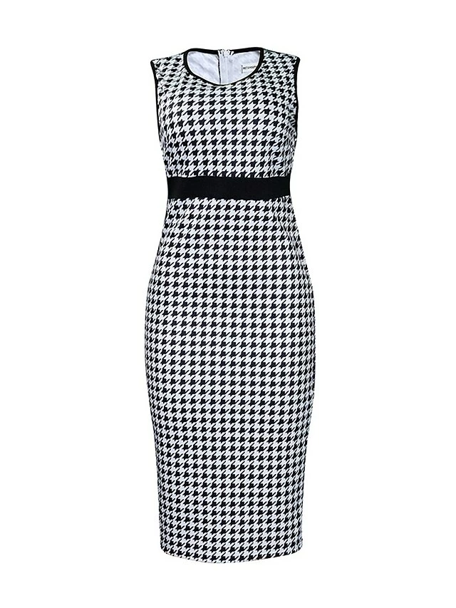 Women’s Two Piece Dress Set Casual Dress Sheath Dress Daily Going Out Streetwear Modern Print Midi Dress Crew Neck Long Sleeve Houndstooth Regular Fit Black Fall Winter S M L XL XXL