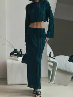 Women’s Two Piece Dress Set Casual Dress Skirt Set Outdoor Daily Fashion Streetwear Pleated Midi Dress Crew Neck Long Sleeve Plain Regular Fit Blue Green Rose Red Fall Winter S M L
