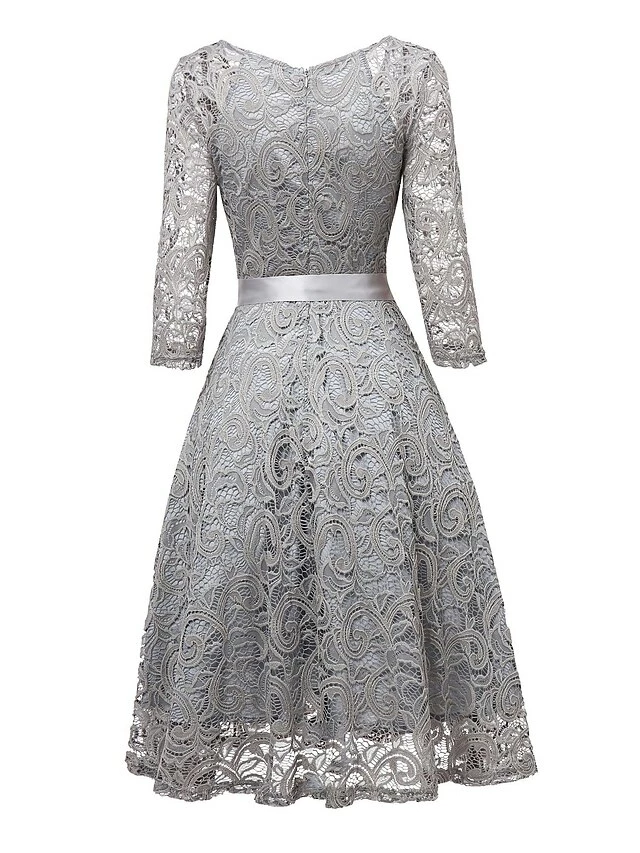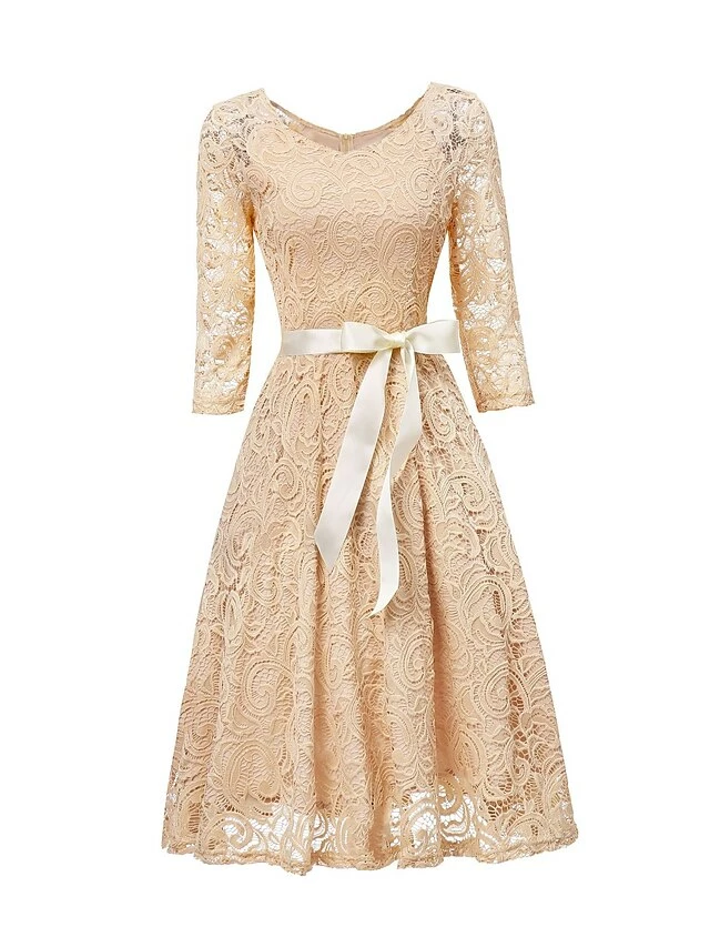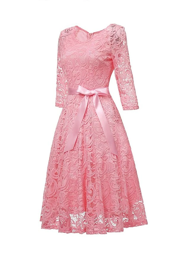 Women‘s Vintage Tea Dresses Party Dress Lace Dress Homecoming Dress Knee Length Dress Pink Wine Navy Blue 3/4 Length Sleeve Pure Color Lace Summer Spring Fall V Neck Classic Winter Dress