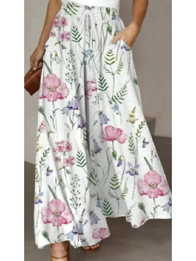 Women’s Wide Leg Pants Trousers Baggy Full Length Pocket Baggy Micro-elastic Casual Vacation Casual Daily Pink Green S M