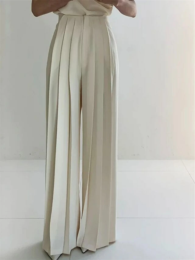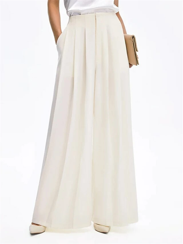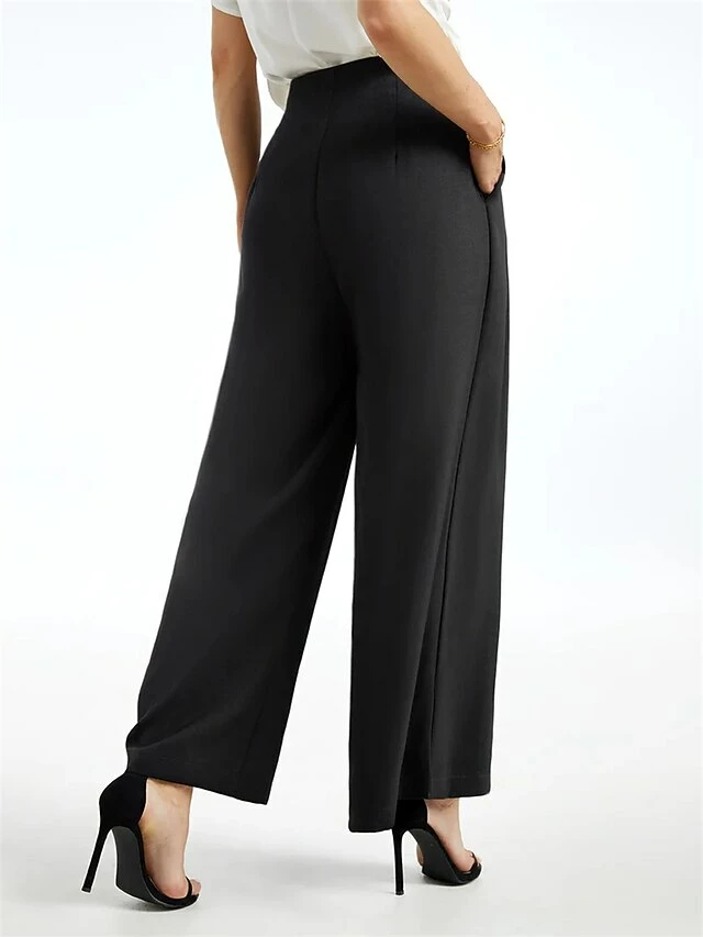 Women’s Wide Leg Pants Trousers Full Length Fashion Streetwear Work Street Black White S M Fall Winter