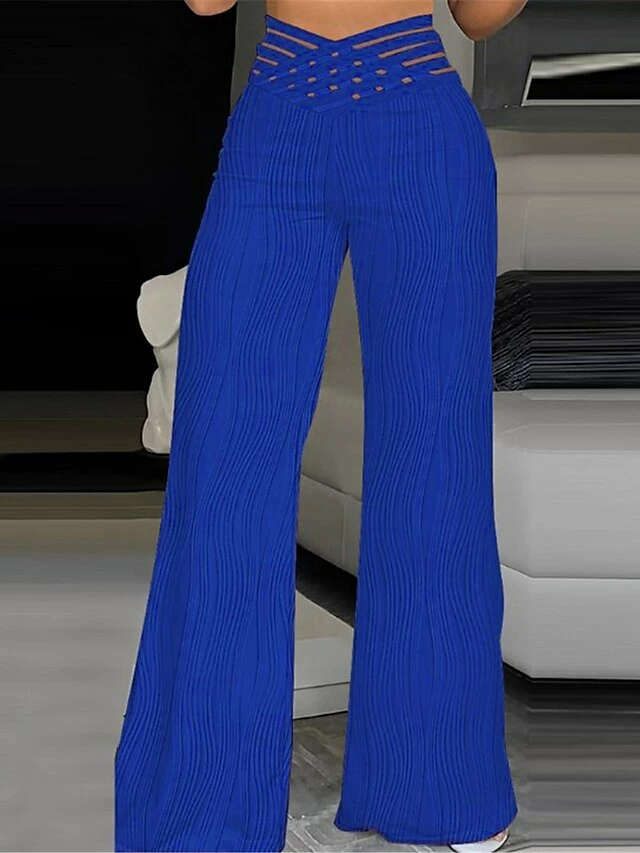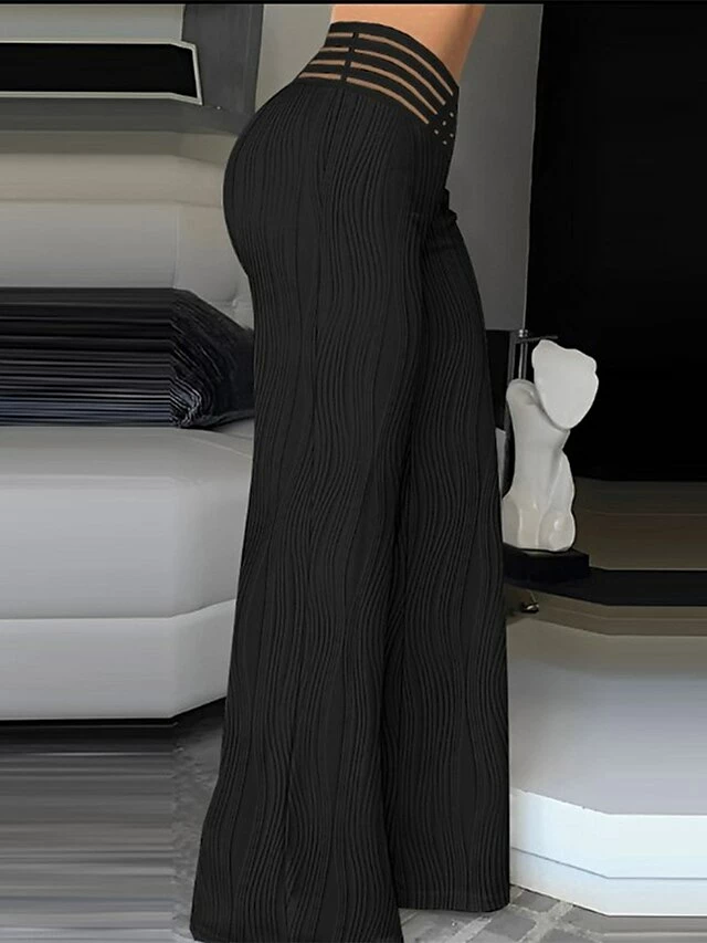 Women’s Wide Leg Pants Trousers Full Length High Cut High Waist Fashion Elegant Party Office Black White S M Fall & Winter