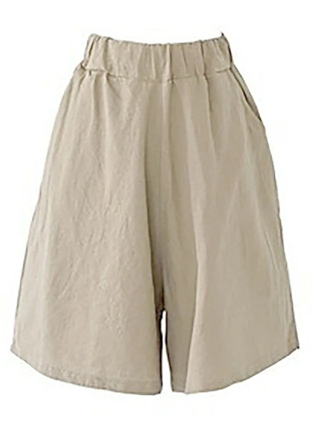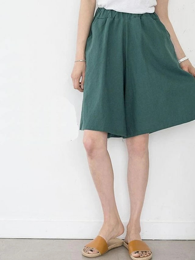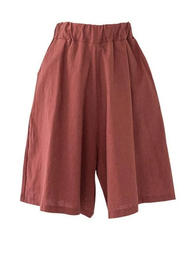 Women’s Wide Leg Shorts Burmuda Shorts Faux Linen Black Red Navy Blue Fashion Casual Daily Side Pockets Wide Leg Knee Length Comfort Solid Color M L XL 2XL 3XL