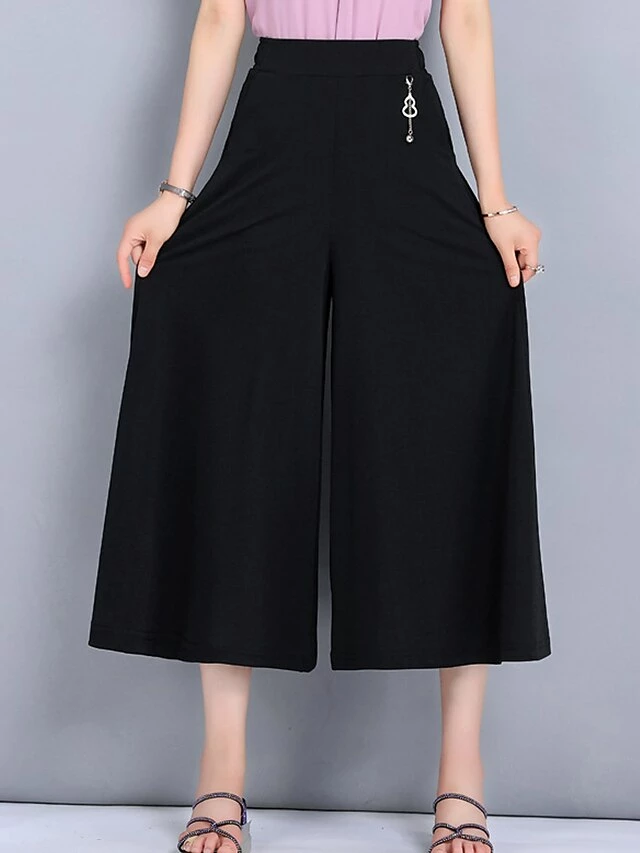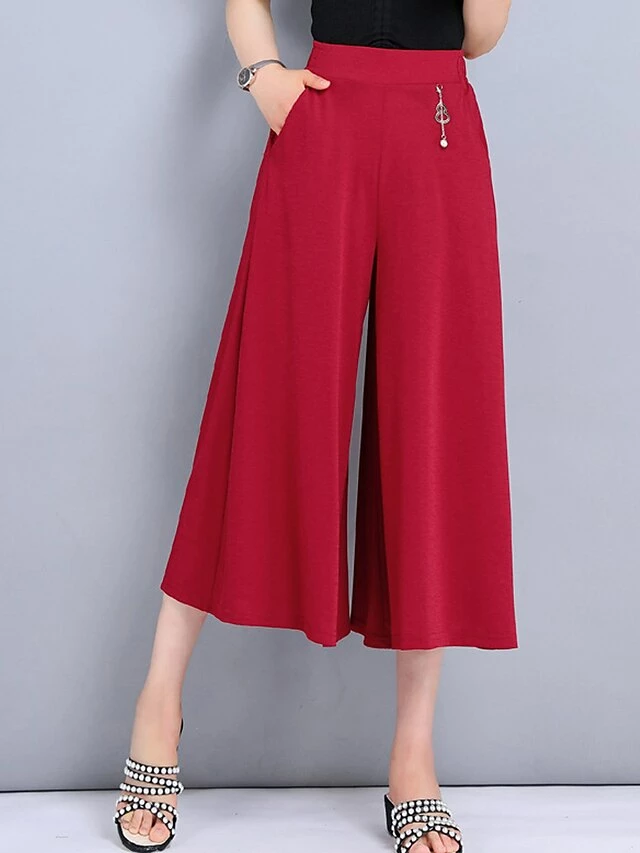 Women’s Wide Leg Slacks Capri Shorts Ankle-Length Active Fashion Outdoor Street Claret Black XL 2XL Fall Winter