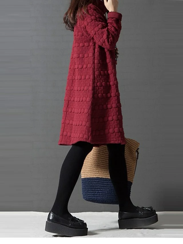 Women’s Work Dress Black Dress A Line Dress Fashion Midi Dress Ruched Turtleneck Long Sleeve Plain Loose Fit Black Wine Gray Fall Winter M L XL XXL