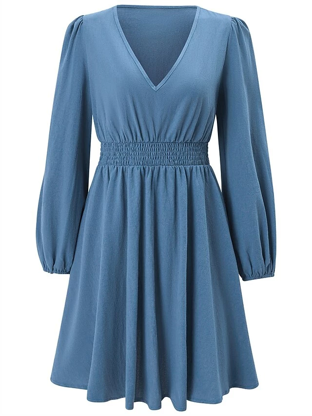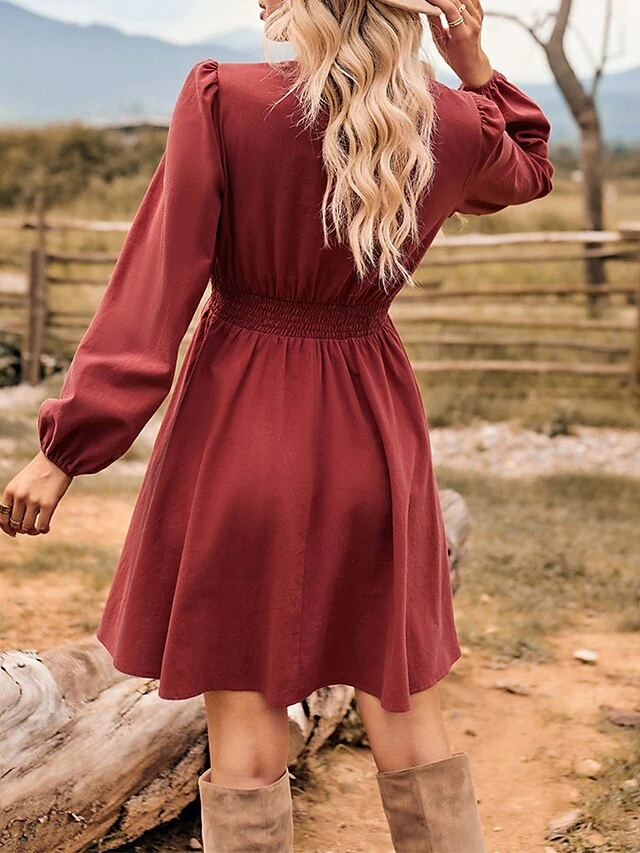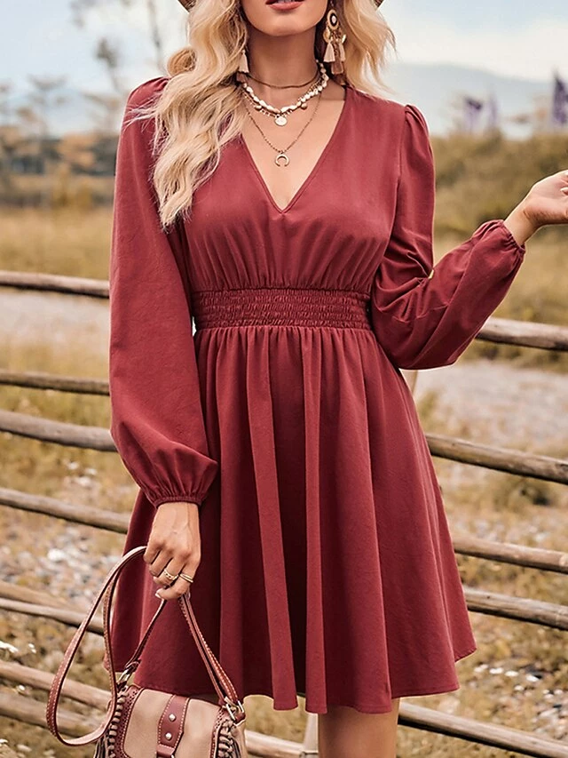 Women’s Work Dress Black Dress Semi Formal Dress Fashion Mini Dress Ruched V Neck Long Sleeve Plain Regular Fit Black Red Blue Fall Winter S M L XL