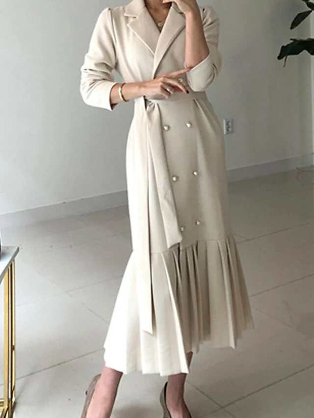 Women’s Work Dress Blazer Dress Semi Formal Dress Fashion Office Daily Workfashion Midi Dress Lace Up Pleated Shirt Collar Long Sleeve Plain Loose Fit Black Apricot Fall Winter S M L XL XXL