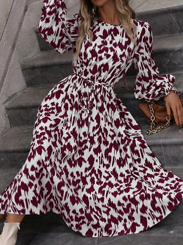 Women’s Work Dress Casual Dress Swing Dress Fashion Daily Workfashion Midi Dress Print Crew Neck Long Sleeve Leopard Loose Fit Red Orange Fall Winter S M L XL