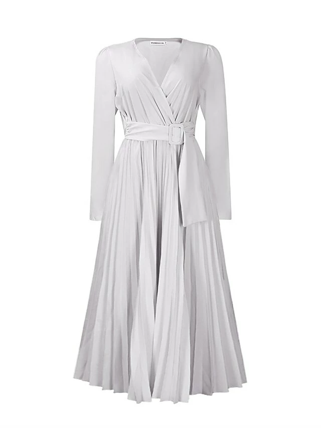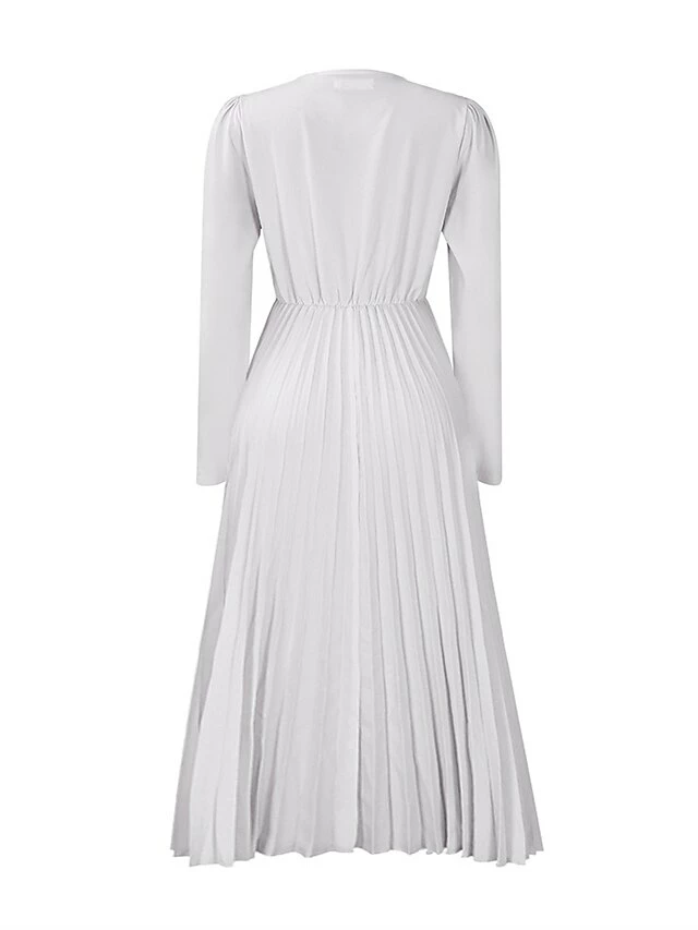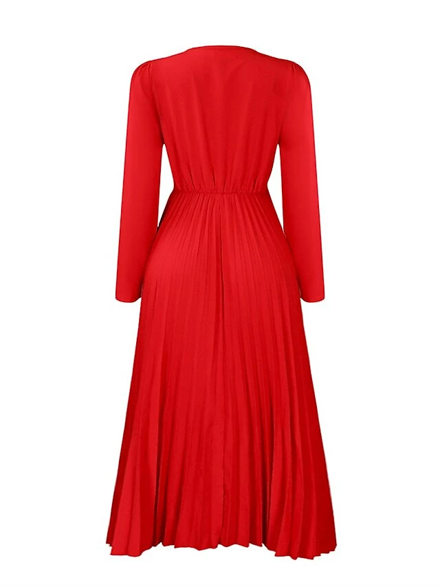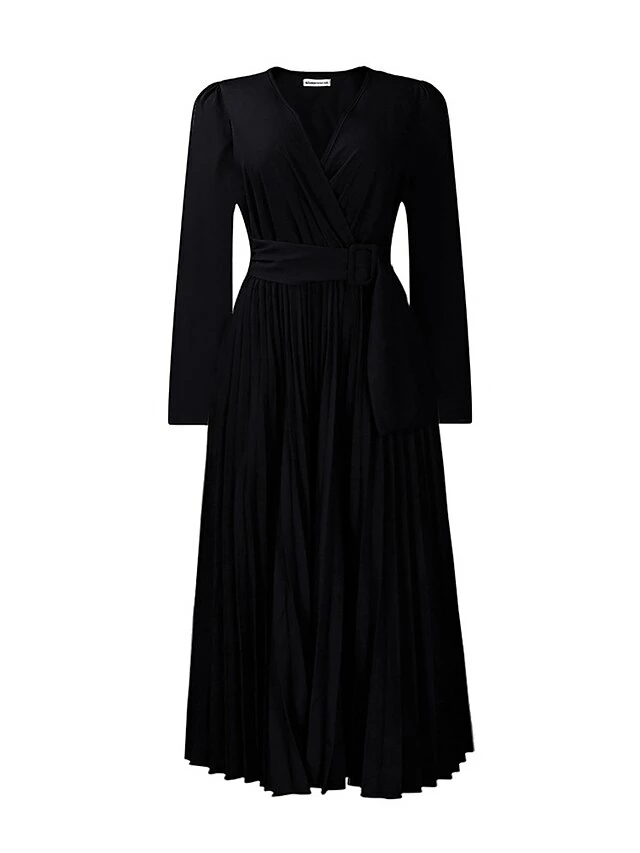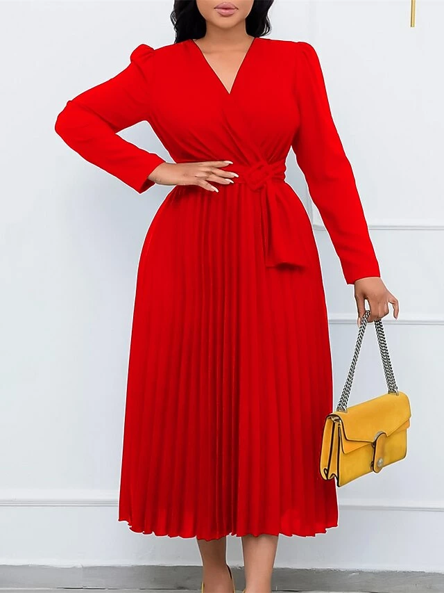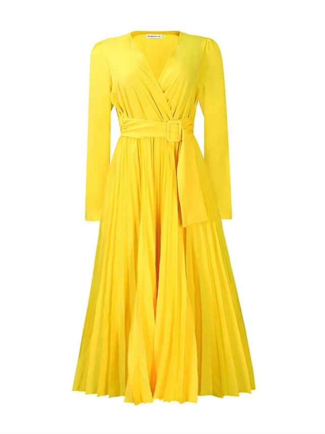 Women’s Work Dress Sheath Dress Swing Dress Fashion Winter Dress Office Daily Midi Dress Lace Up Pleated V Neck Long Sleeve Plain Regular Fit Black Yellow Pink Fall Winter S M L XL XXL